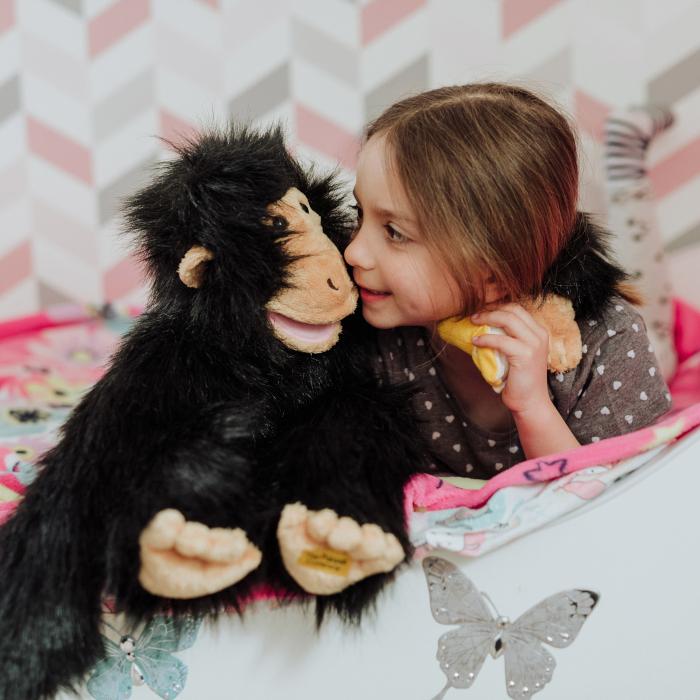 Pacynka Szympans marki Puppet Company należy do serii Medium Primates co oznacza Średnie Naczelne. Zabawa pacynką przypominającą prawdziwe zwierzę pozwoli dziecku na bliższe poznanie świata fauny. Z pozoru banalna zabawa może posłużyć jako pierwsza lekcja biologii na której maluch dowie się jak wygląda dane zwierzę, gdzie mieszka, co je i jakie są jego zwyczaje. Poprzez zabawę możemy również wpłynąć na prawidłowy stosunek dzieci do zwierząt, nauczyć je szacunku i empatii do żywych stworzeń.