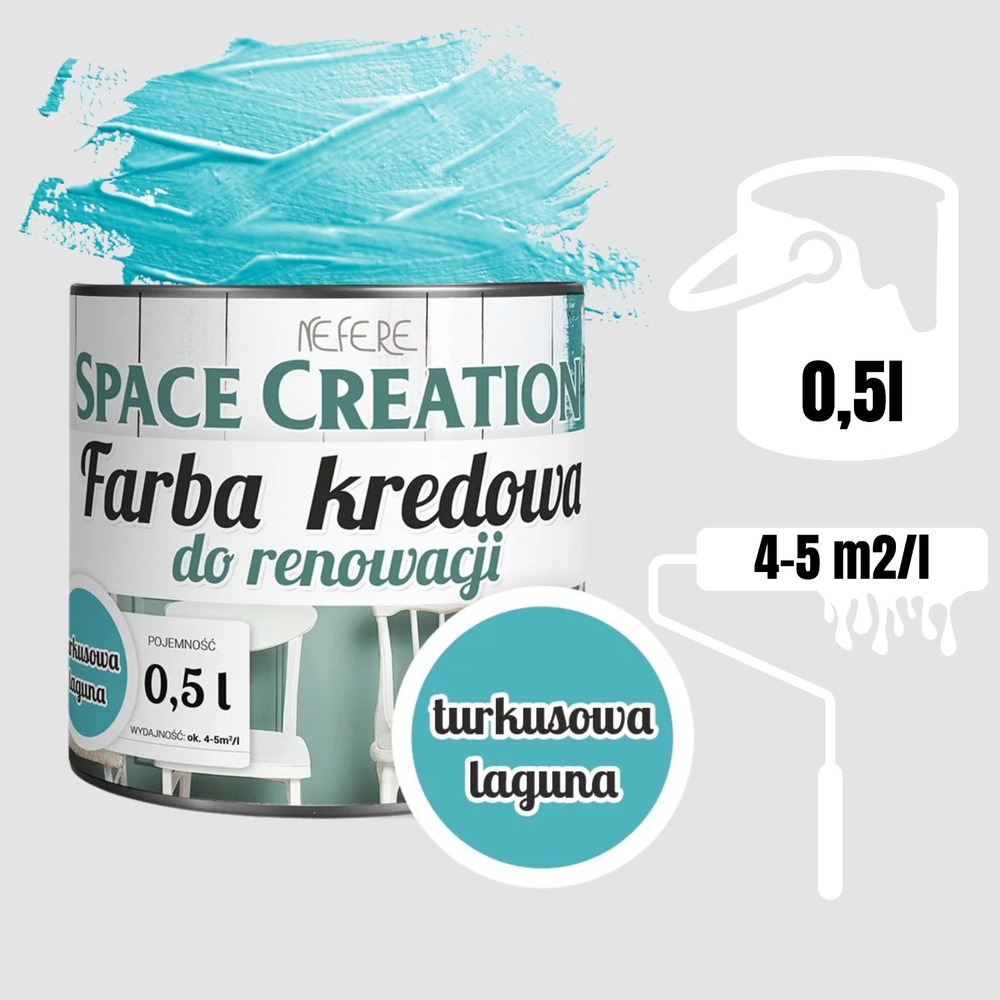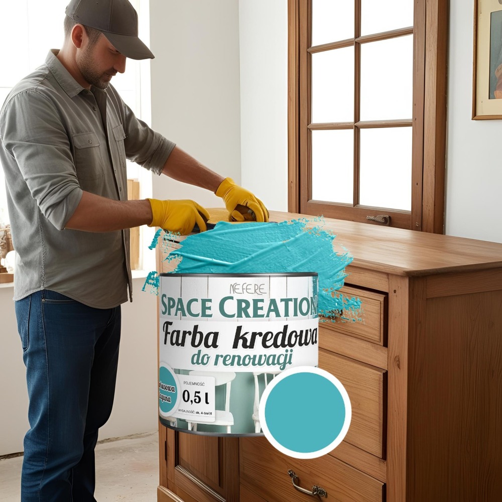 Kredowa farba do renowacji mebli turkusowa laguna 0,5 l Space Creation ⭐⭐⭐⭐⭐