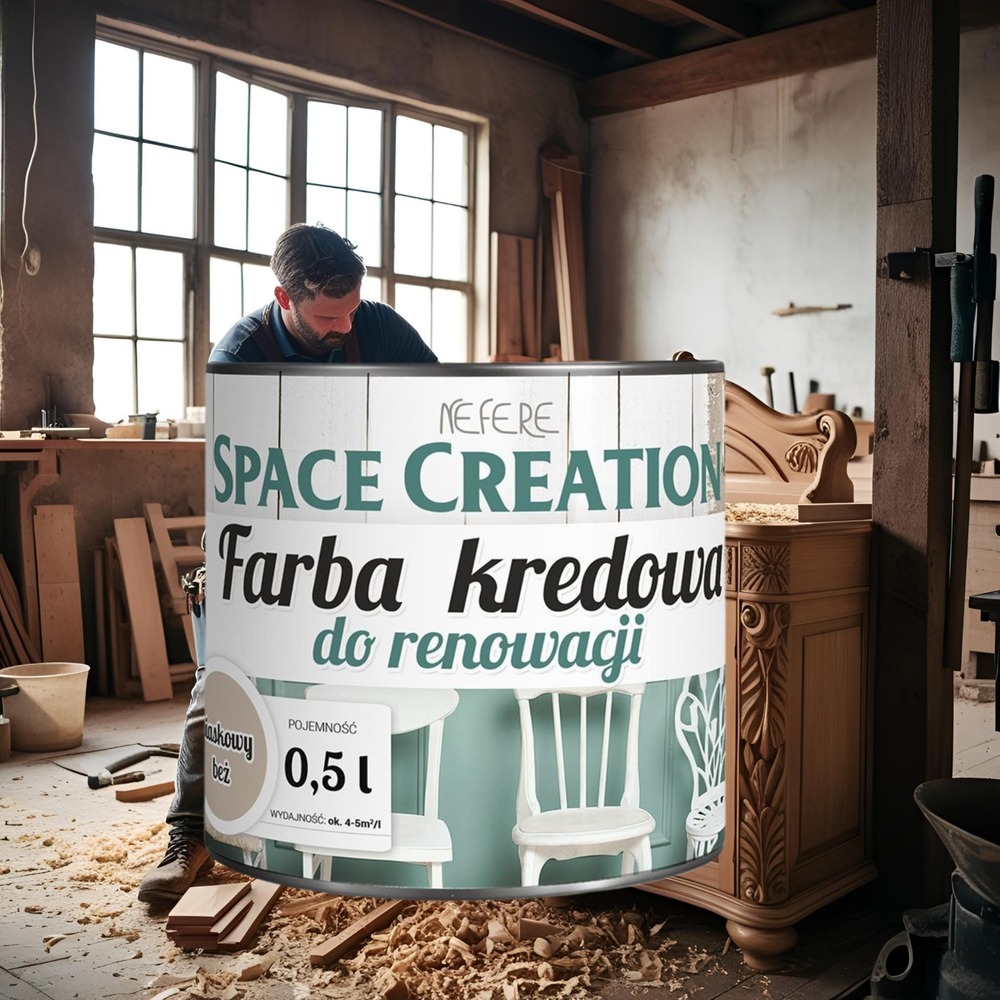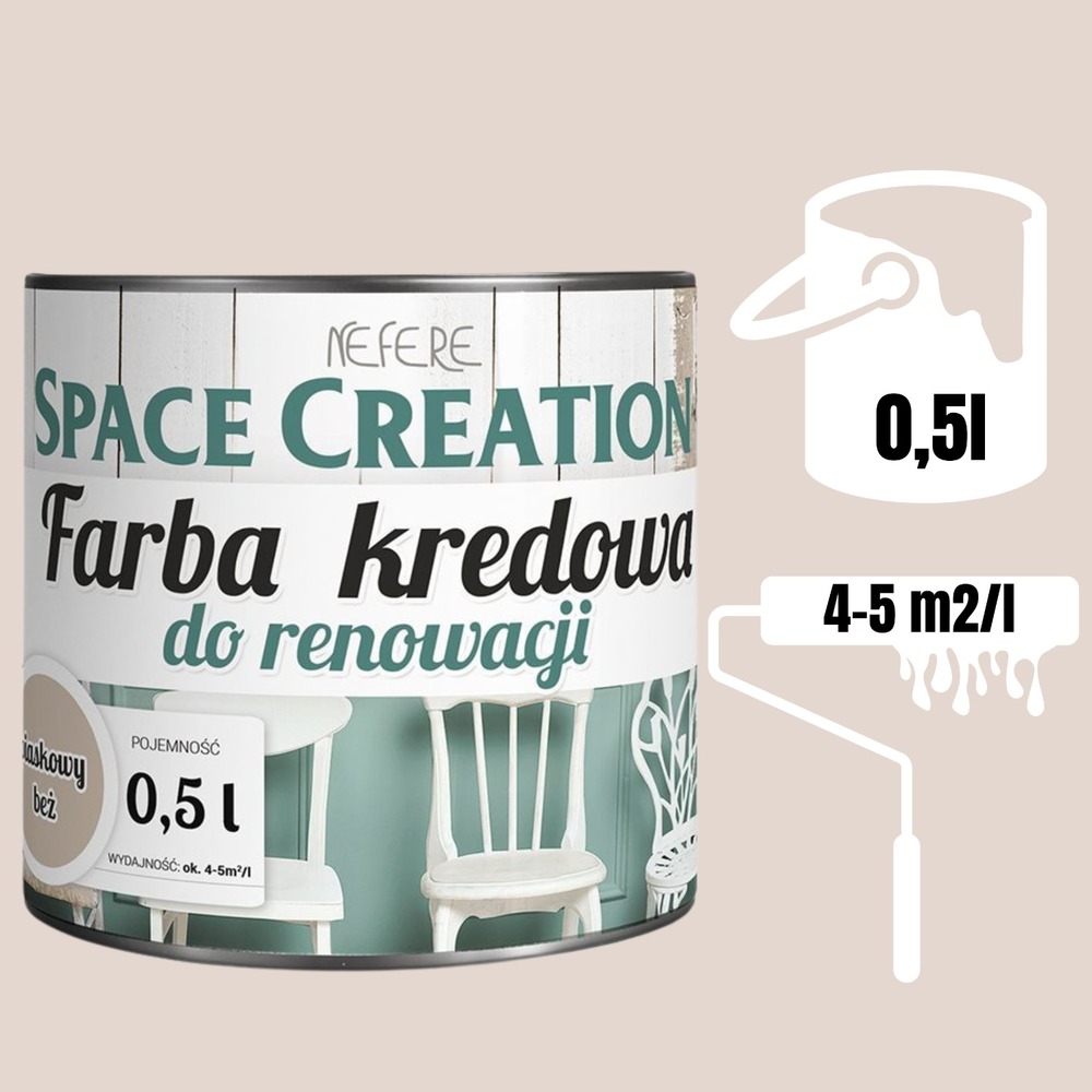 Kredowa farba do renowacji mebli piaskowy beż 0,5 l Space Creation ⭐⭐⭐⭐⭐