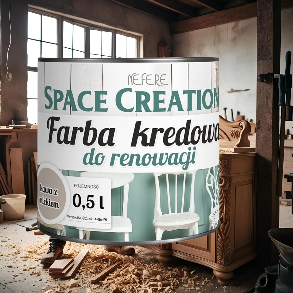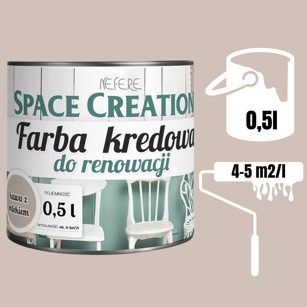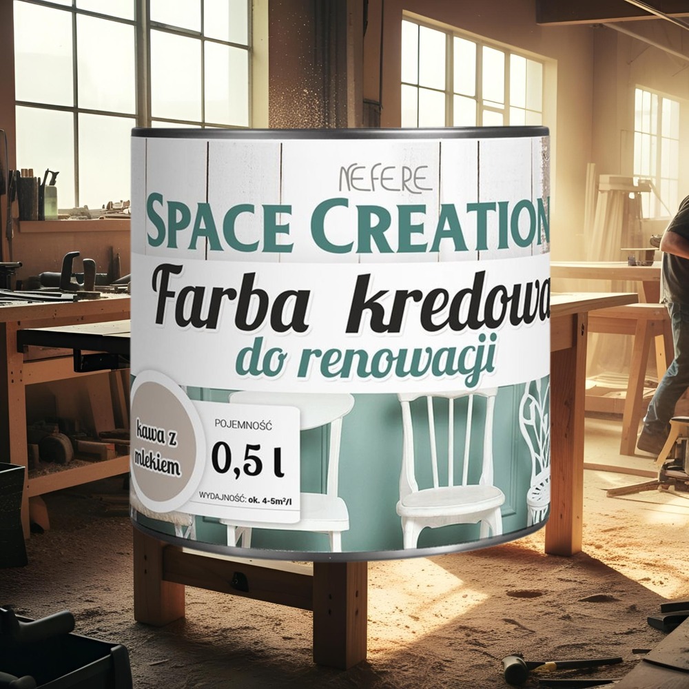 Kredowa farba do renowacji mebli kawa z mlekiem 0,5 l Space Creation ⭐⭐⭐⭐⭐