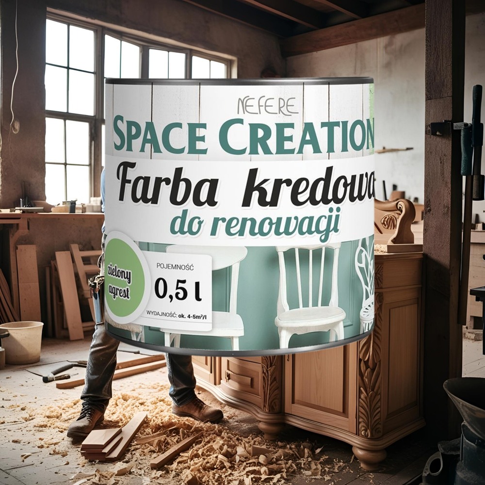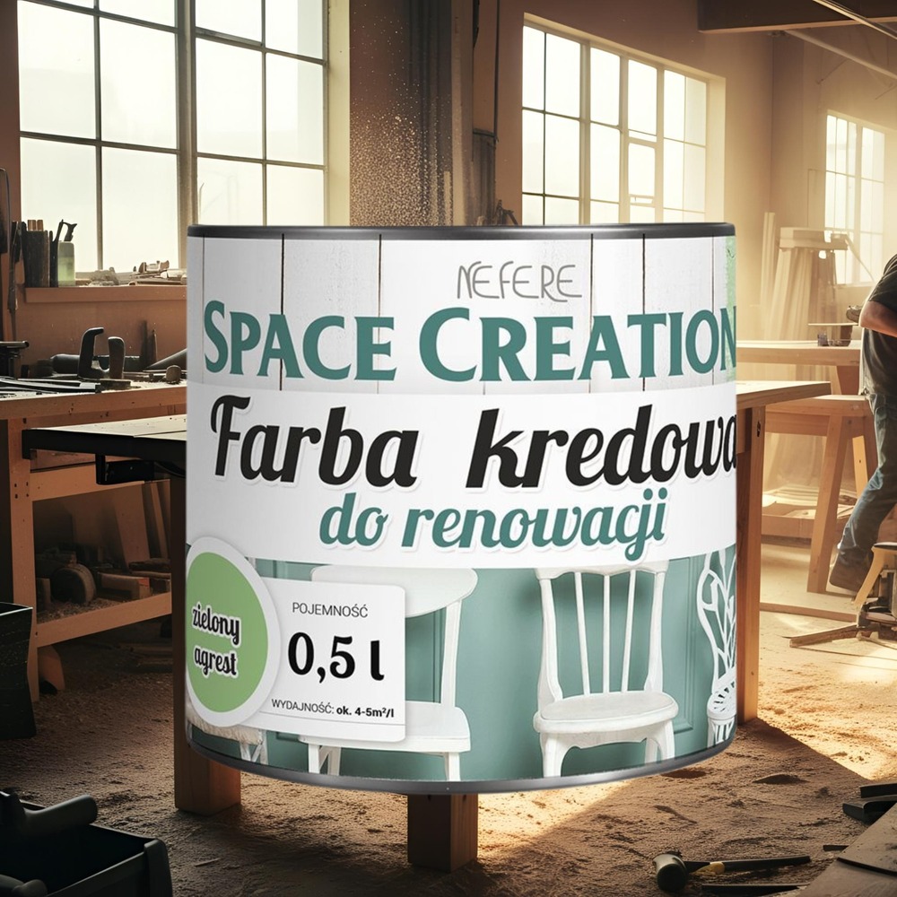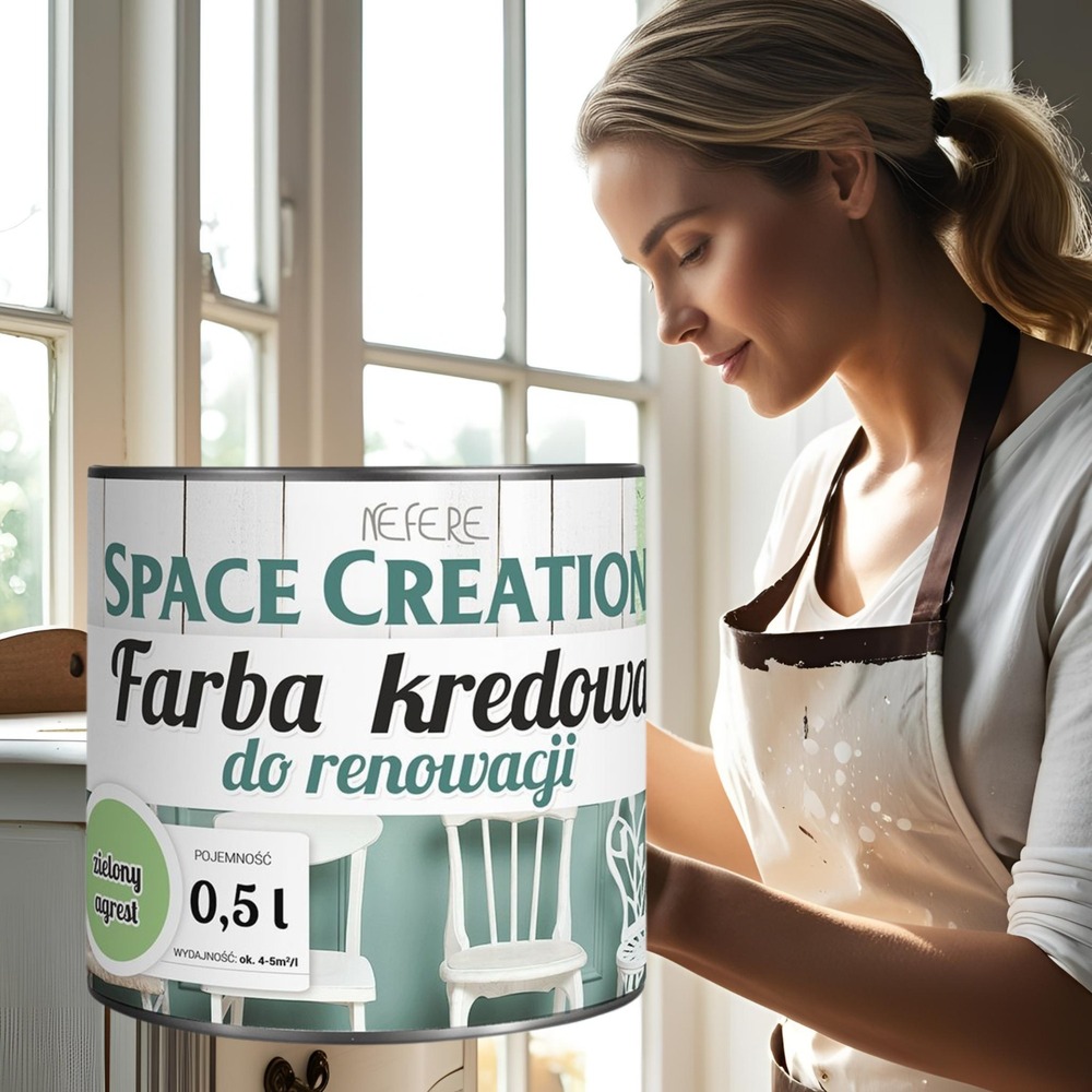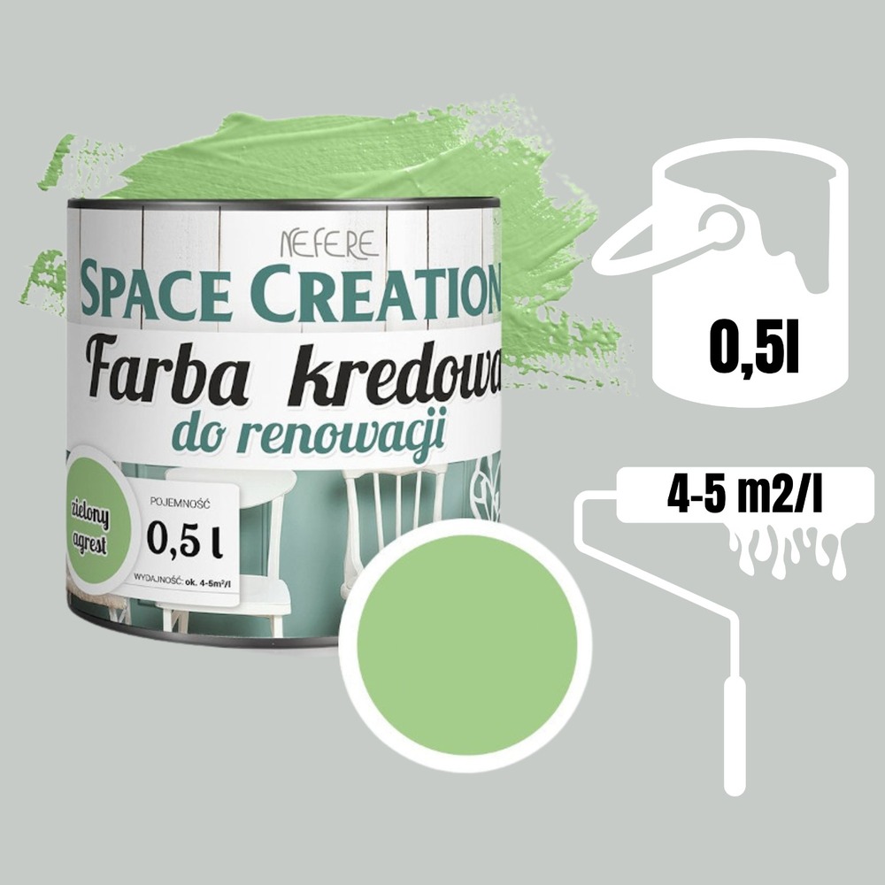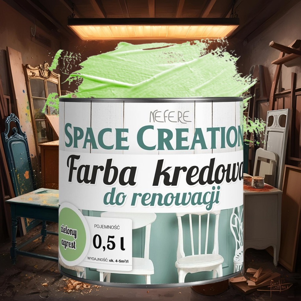 Kredowa farba do renowacji mebli Zielony agrest 0,5 l Space Creation ⭐⭐⭐⭐⭐