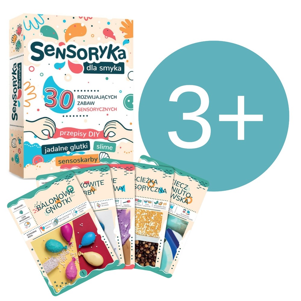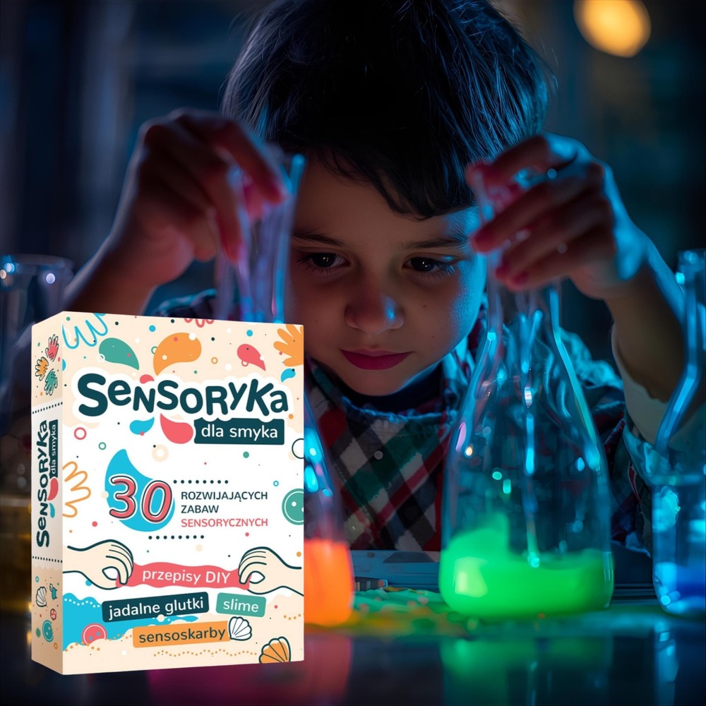 Zabawy sensoryczne z książką „Sensoryka dla Smyka” stymulują wszystkie siedem zmysłów Twojego dziecka. Dzięki różnorodnym bodźcom maluch poznaje kolory, kształty, faktury, zapachy, smaki i dźwięki, a przy tym rozwija wyobraźnię i kreatywność.