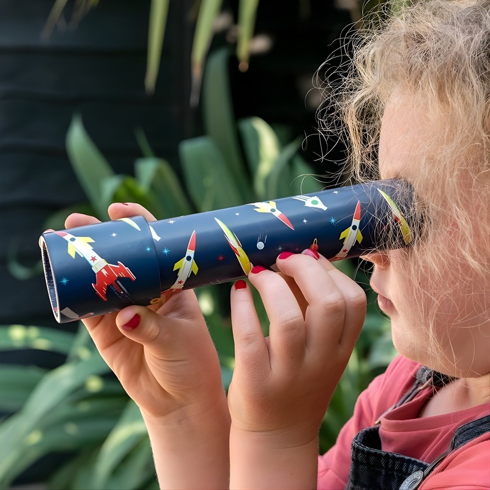 Kalejdoskop dla dzieci Rex London z motywem kosmosu przenosi maluchy w niesamowitą podróż po świecie barw, gwiazd i fantazyjnych kształtów. Wbudowane kolorowe szkiełka tworzą za każdym razem unikalne, hipnotyzujące mozaiki, które zmieniają się przy każdym obrocie. To doskonały sposób na pobudzenie kreatywności oraz rozwijanie wyobraźni dziecka.