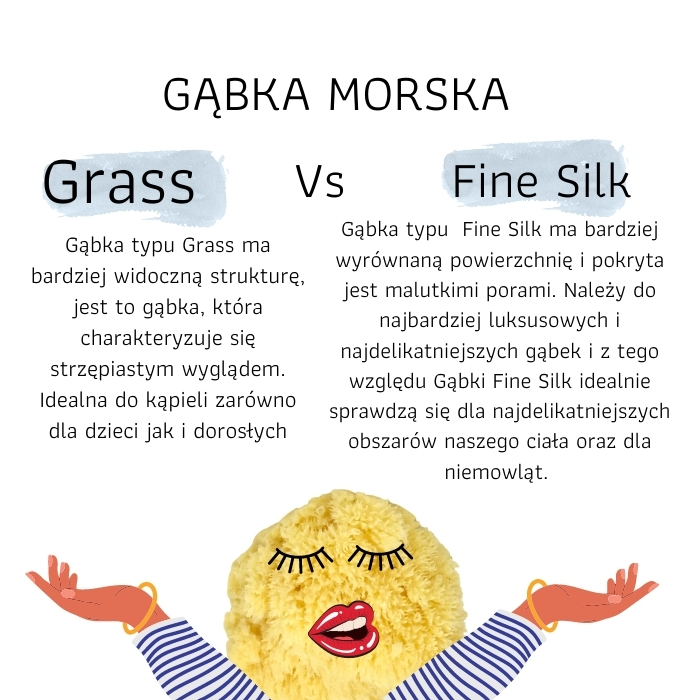 Naturalna gąbka morska jest bezpieczna i odpowiednia dla osób w każdym wieku, również dla niemowląt. Po zmoczeniu są miękkie i gładkie jak jedwab. Są idealne do mycia ponieważ chłoną dużą ilość wody, potrafią wchłonąć od 20 do 50 razy więcej płynów niż same ważą. Ponadto świetnie się pienią! Jej zalety doceniano już 2000 lat temu, była uważana za towar luksusowy i nie była powszechnie dostępna. Jeszcze kilkaset lat temu była używana wyłącznie na dworach królewskich. Regularne stosowanie gąbek morskich sprawia, że skóra nabiera blasku i jest w delikatny sposób pozbawiana martwego naskórka. Gąbki morskie nie zawierają alkoholu, parabenów, silikonów oraz SLS i SLES, dlatego mogą je stosować cała rodzina!