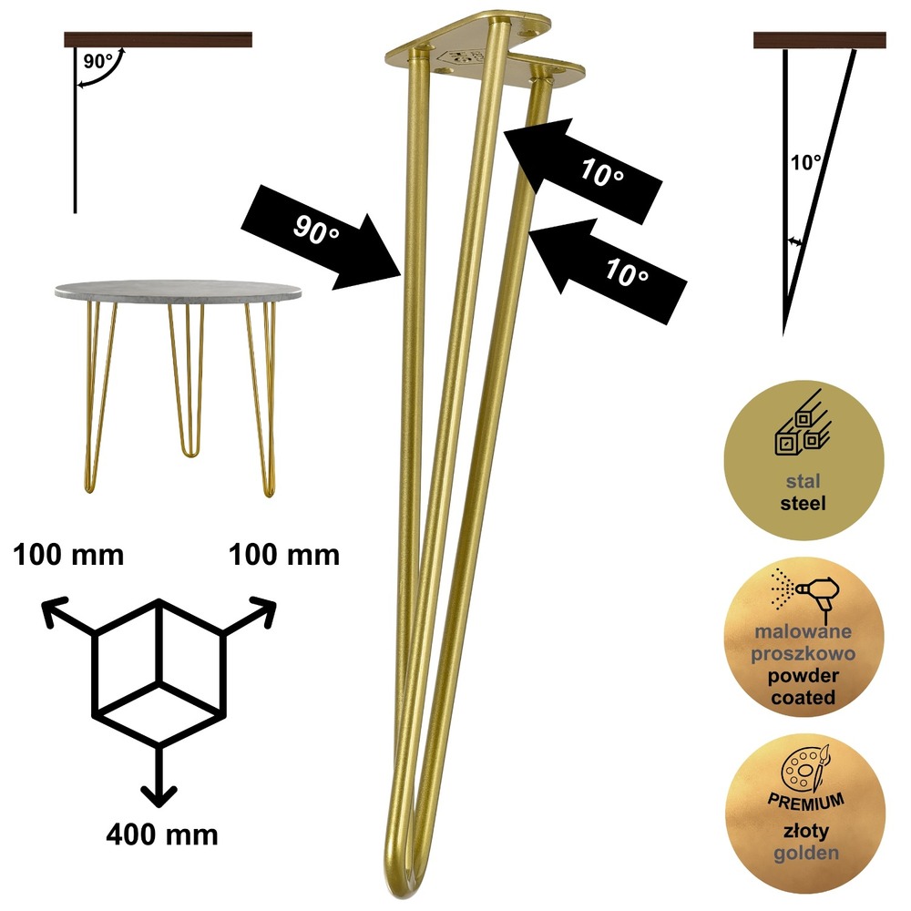 Metalowa noga hairpin legs do stolika kawowego trzy pręty noga złota TL40 cm