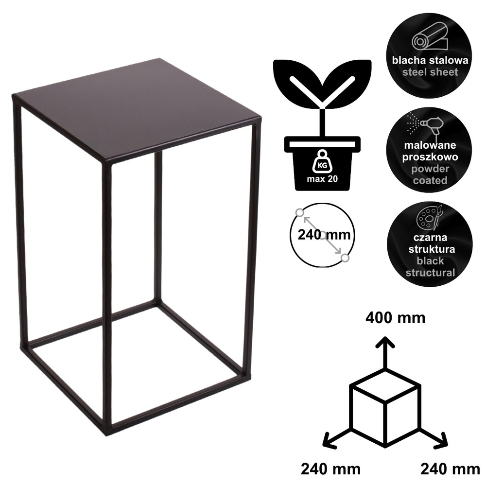 Kwietnik metalowy TOWER 40 to nowoczesny stojak na kwiaty wykonany ze stali, przeznaczony do ekspozycji roślin oraz dekoracji wnętrz. Minimalistyczna forma prostopadłościanu sprawia, że produkt doskonale wpisuje się w aranżacje nowoczesne, loftowe i eleganckie. Dzięki stabilnej konstrukcji i kompaktowej wysokości 40 cm idealnie sprawdzi się zarówno w domu, jak i przestrzeniach komercyjnych.