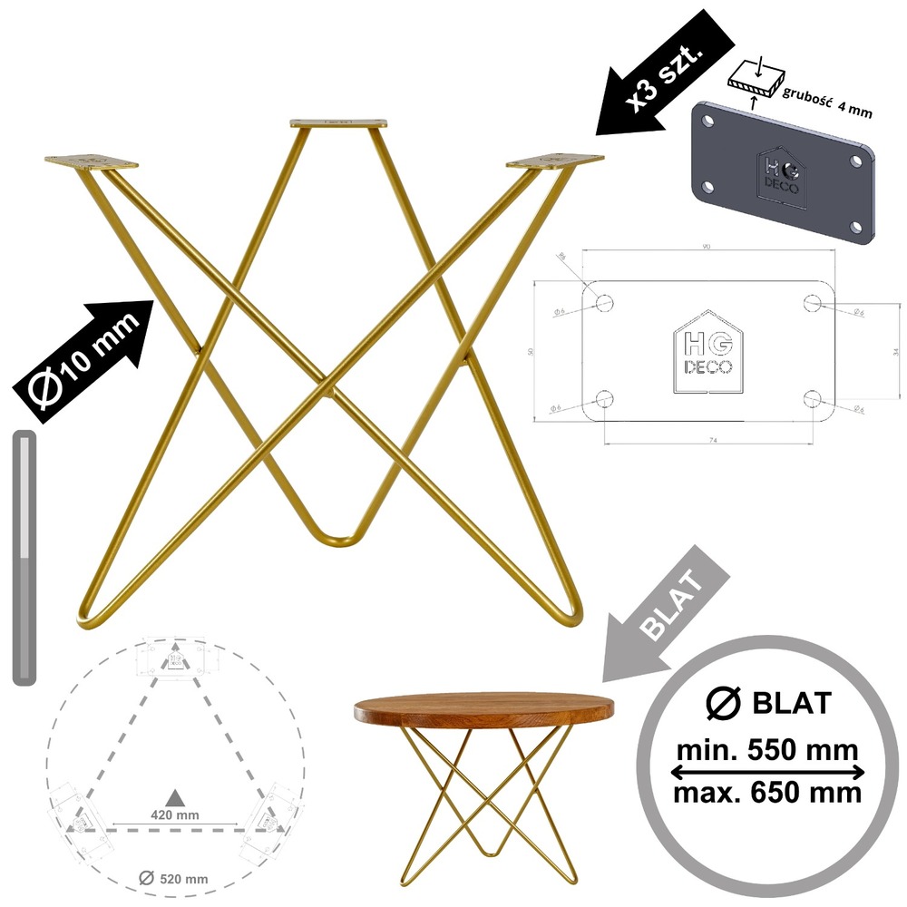 Stelaż noga do stolika kawowego STAR 40 cm złota