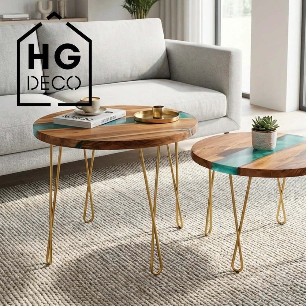 Wyobraź sobie stolik z litego drewna lub żywicy epoksydowej, w którym naturalna struktura materiału spotyka się ze złotą, skręconą formą nóg. Światło odbijające się od powierzchni Premium Gold tworzy efekt eleganckiego mebla jak z galerii designu.
