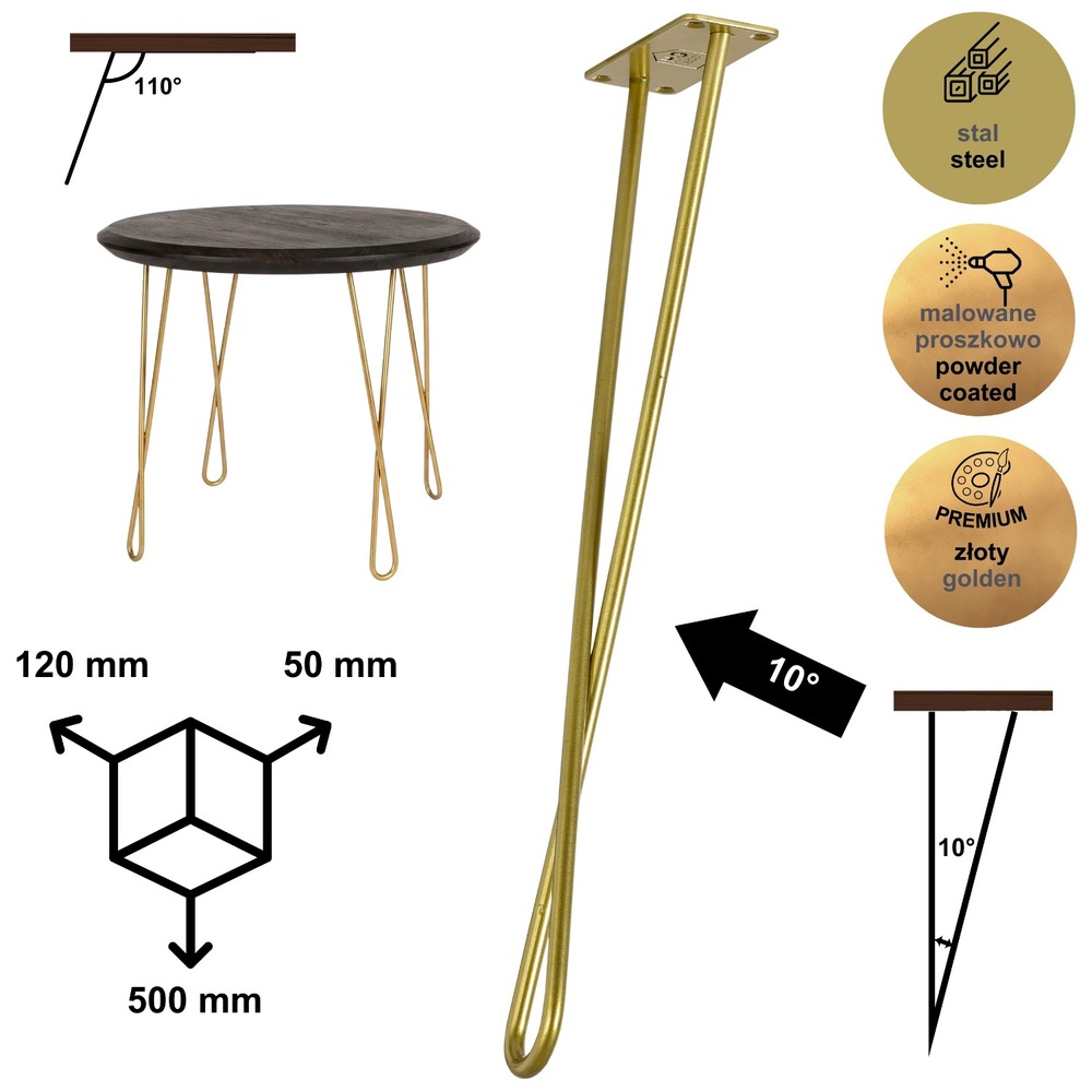 Metalowa noga meblowa DX50 do stolika kawowego złota 50 cm HGDECO