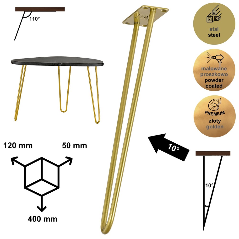 ✅ Nogi meblowe hairpin legs przypominają kształtem spinkę do włosów. Dwunoga wykonana jest z ręcznie giętego pręta stalowego, zapewnia solidność i trwałość.