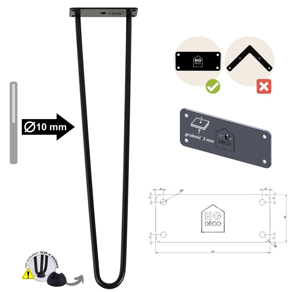 ✅ Nogi meblowe hairpin legs przypominają kształtem spinkę do włosów. Dwunoga wykonana jest z ręcznie giętego pręta stalowego, zapewnia solidność i trwałość.