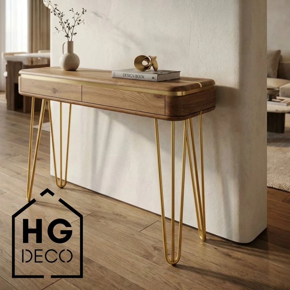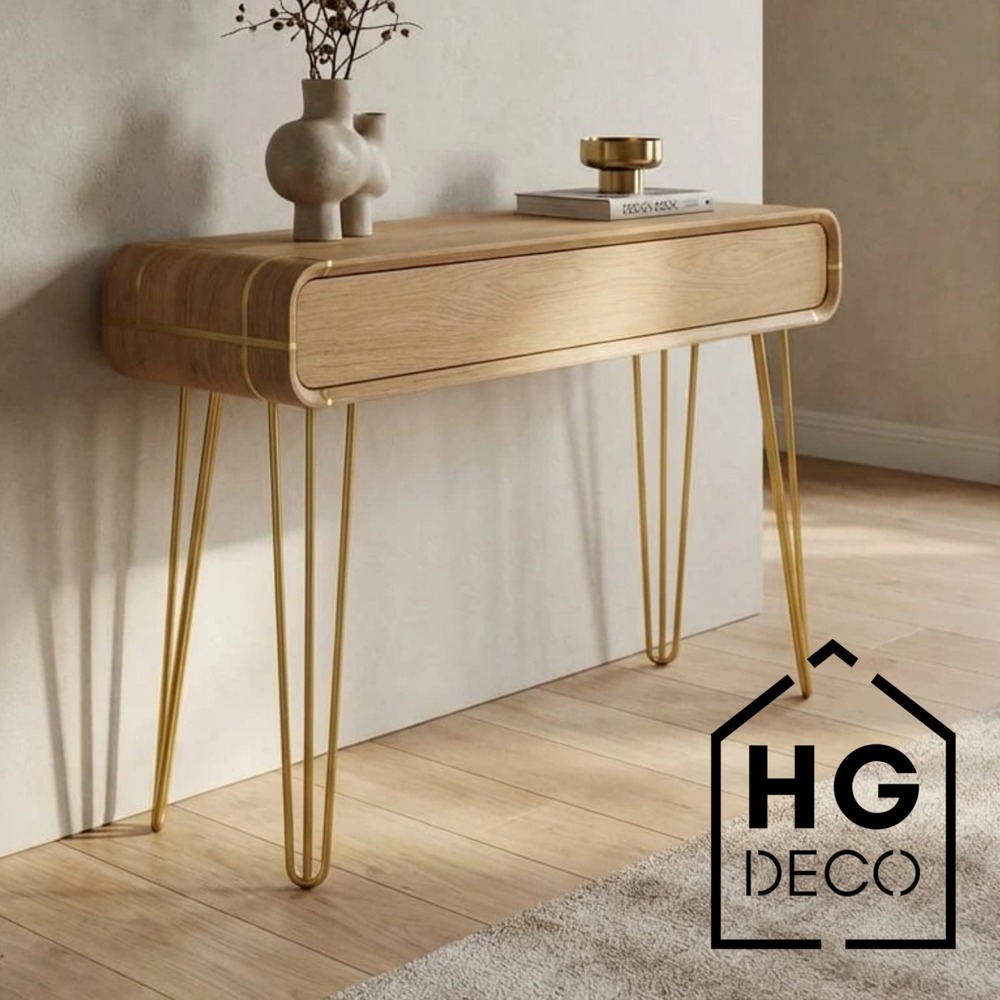 ✅ Stwórz stylową konsolę, przykręcając do drewnianej deski dwie nogi hairpin. Tak wykonane meble będą wyrazistymi elementami, które przyciągają uwagę.