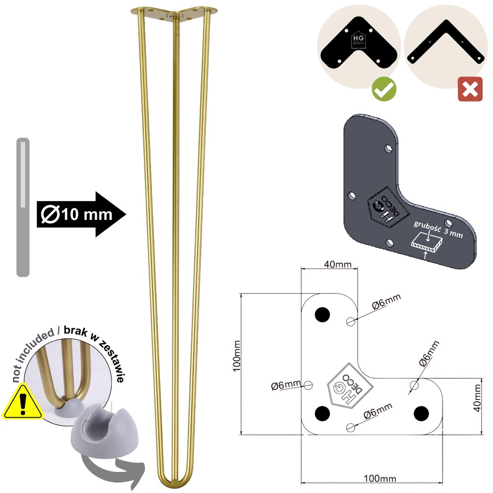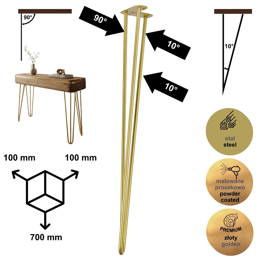Metalowa noga hairpin legs do stołu biurka trzy pręty noga złota TL70 cm