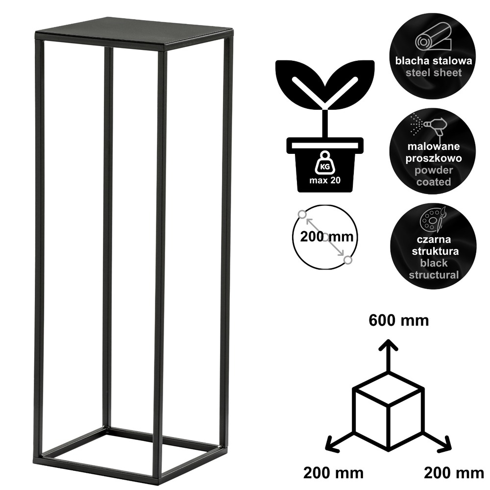 Nowoczesny kwietnik pojedynczy stojący metalowy 60 cm czarny PREMIUM HGDECO