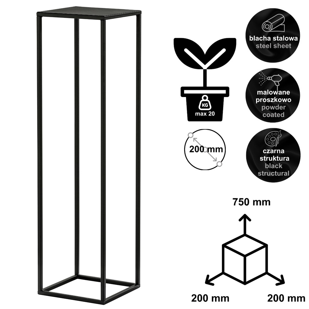Nowoczesny kwietnik pojedynczy stojący metalowy 75 cm czarny PREMIUM HGDECO