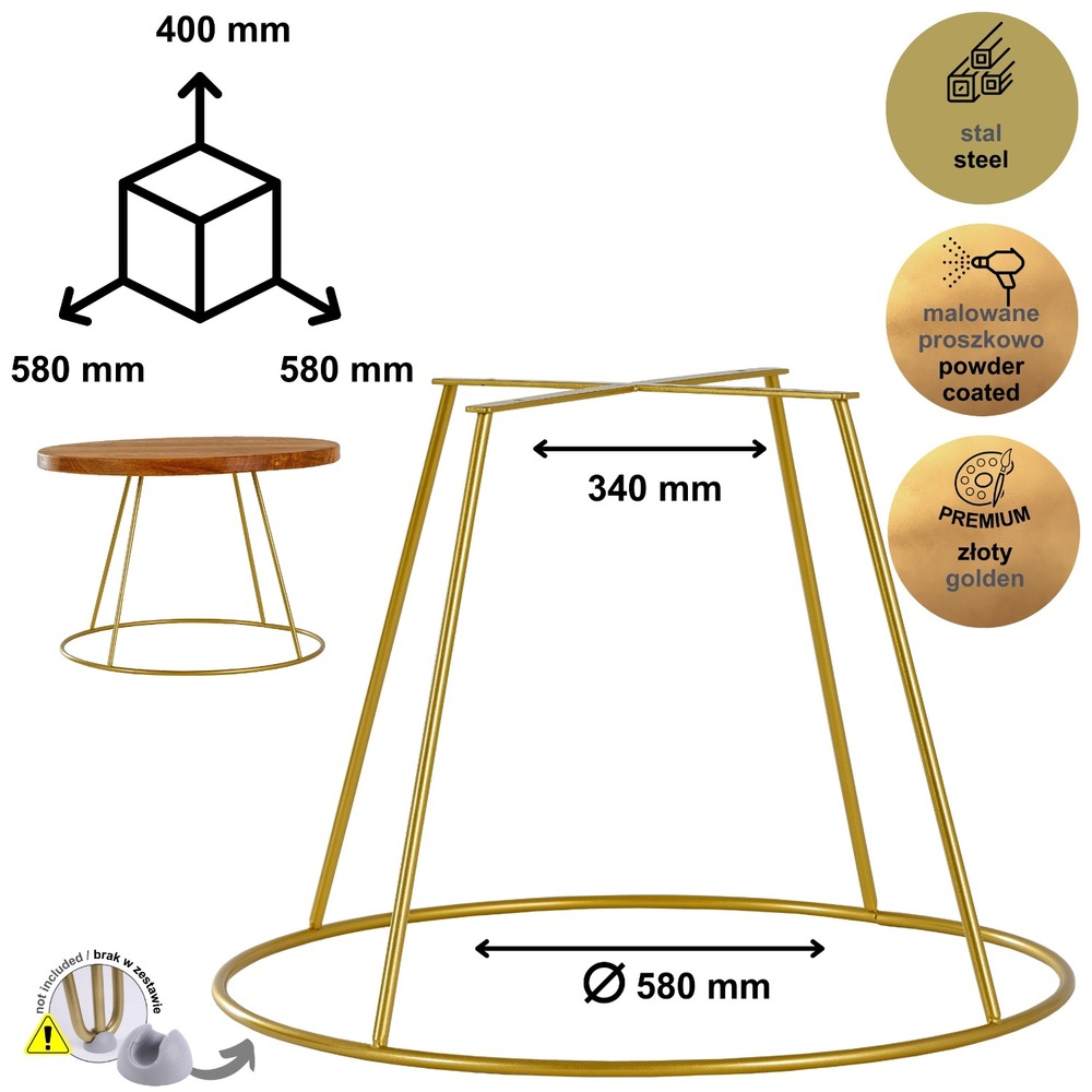 Nowoczesna złota noga do stolika kawowego solidny metalowy stelaż RING 40 cm
