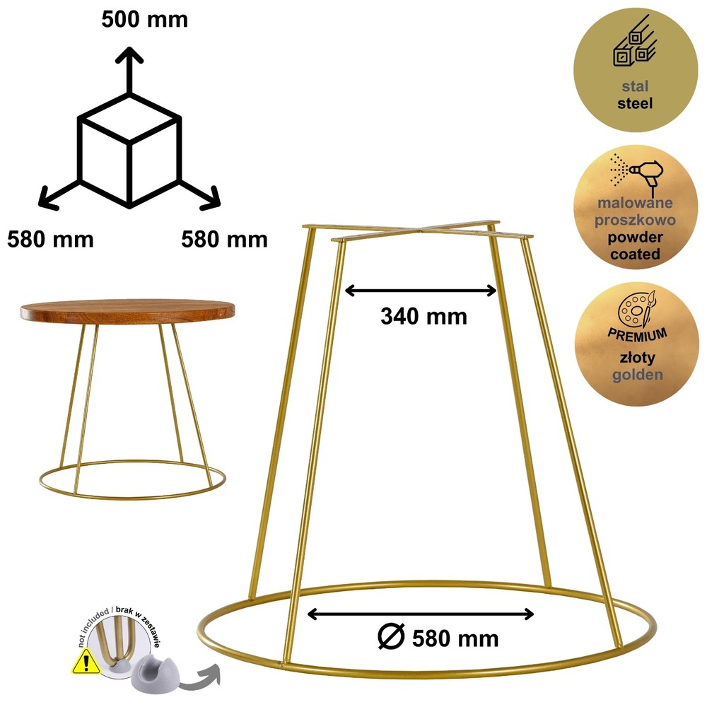 Nowoczesna złota noga do stolika kawowego solidny metalowy stelaż okrągły RING 50 cm