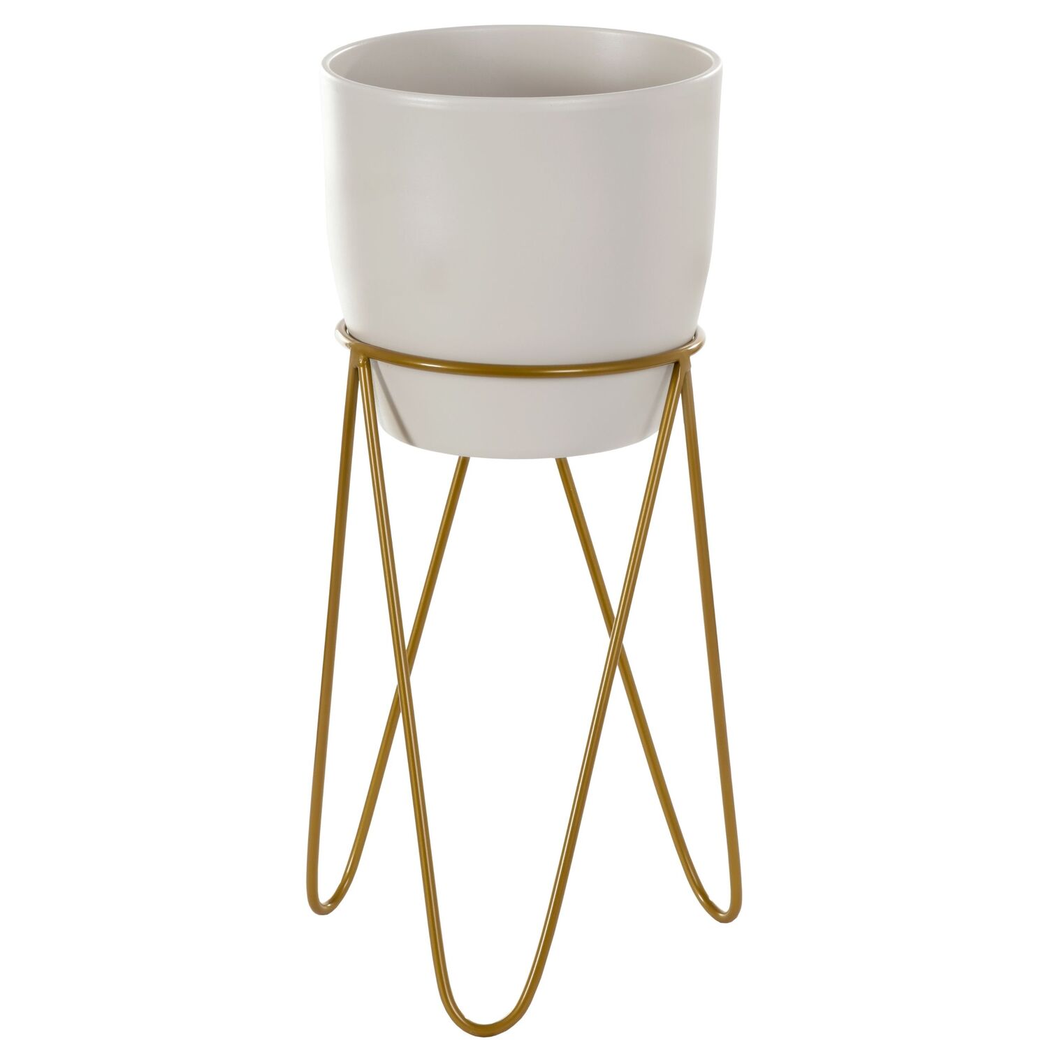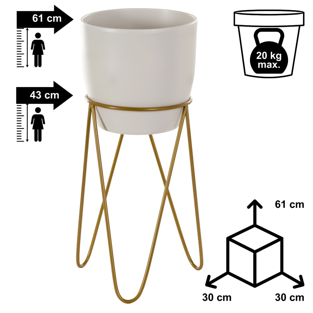 Zestaw: metalowy stojak na doniczkę MALMO 43 cm złoty + ceramiczna osłonka HGDECO