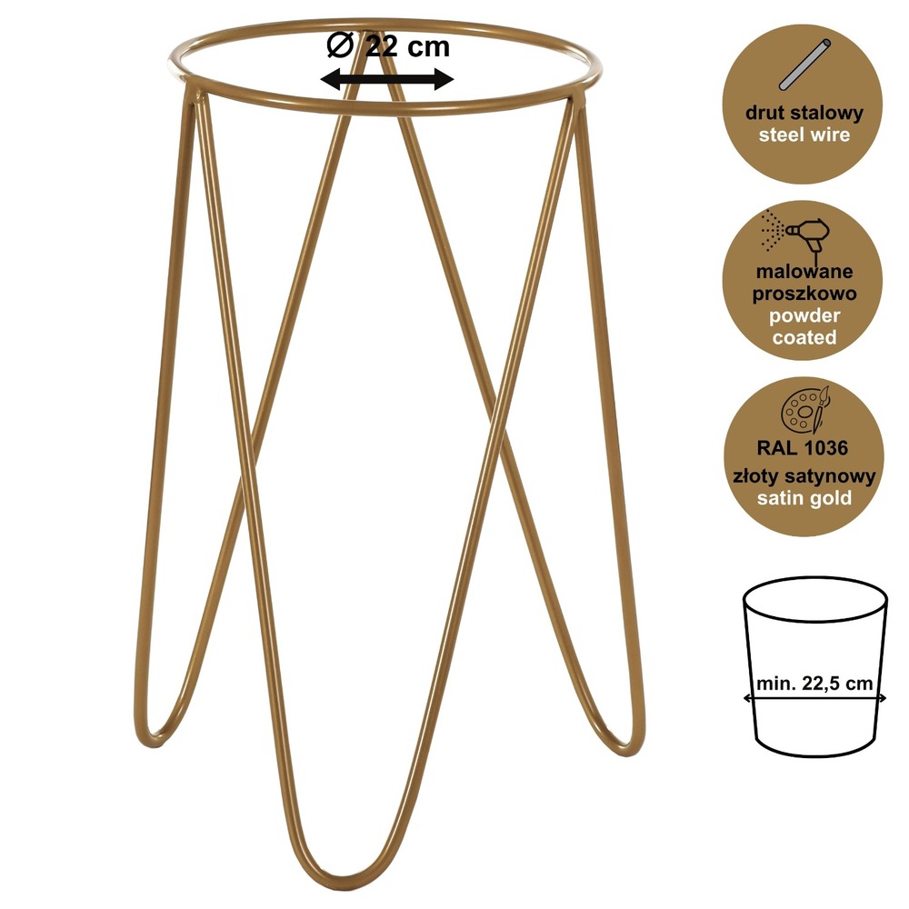 Stojak Metalowy kwietnik stojący złoty MALMO 43 cm HGDECO