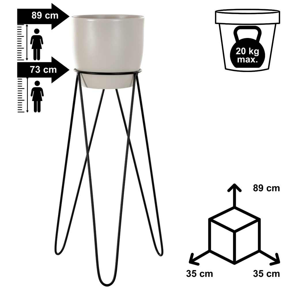 Stojak Metalowy kwietnik stojący czarny MALMO 73 cm HGDECO
