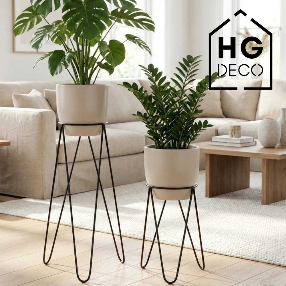 Zestaw: metalowy stojak na doniczkę MALMO + ceramiczna osłonka EMI ⭐⭐⭐⭐⭐