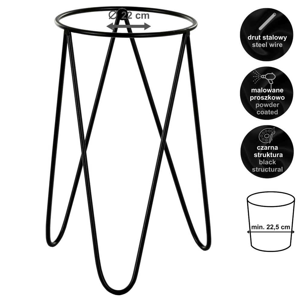 Stojak Metalowy kwietnik stojący czarny MALMO 43 cm HGDECO