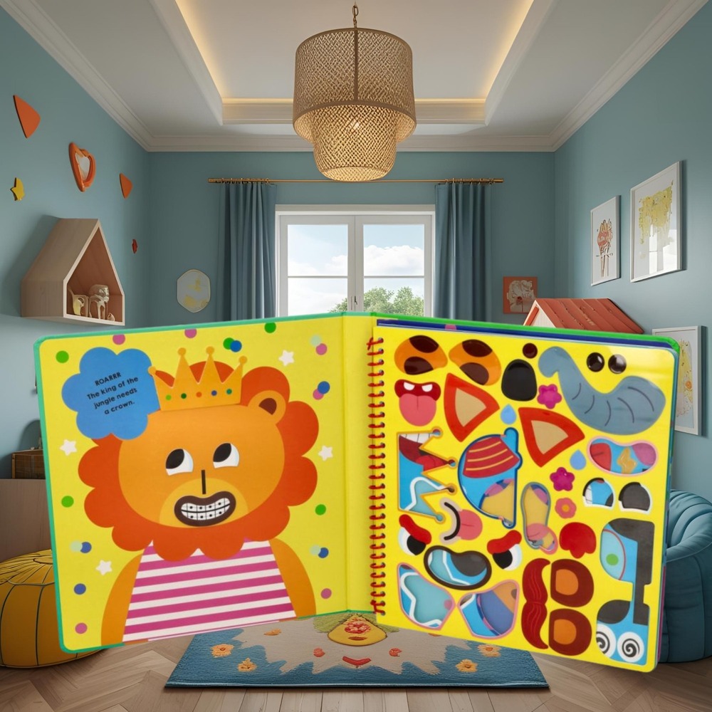 Ta kolorowa książeczka z naklejkami silikonowymi to idealna zabawa dla dzieci od 3 roku życia. Dzięki miękkim, wielokrotnego użytku naklejkom, maluch może tworzyć własne historyjki ze zwierzątkami i rozwijać wyobraźnię podczas zabawy.