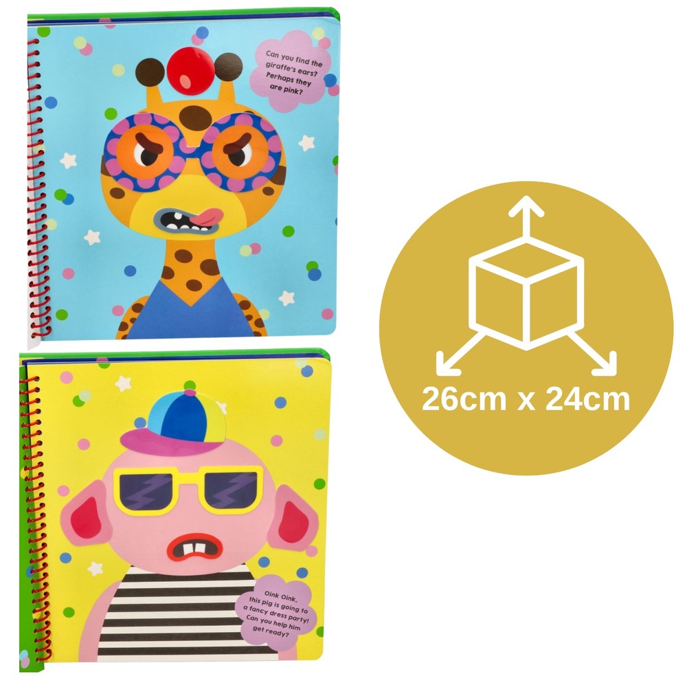 Książeczka ma praktyczny format 26 x 24 cm, dzięki czemu jest wygodna do zabawy w domu i w podróży. To świetny pomysł na prezent dla dziecka, który łączy zabawę z nauką.