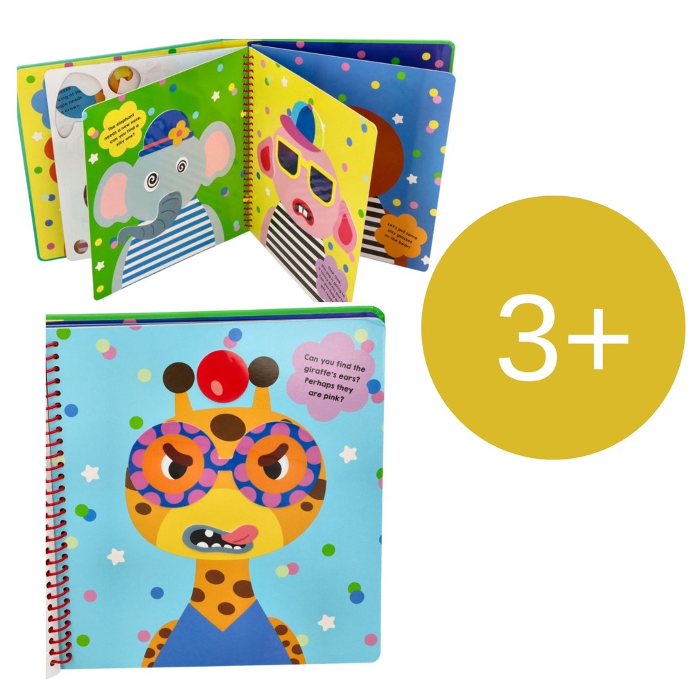 Do książeczki dołączono 2 strony naklejek silikonowych, które są elastyczne, trwałe i łatwe do przyklejania. Naklejki można wielokrotnie odklejać i zmieniać ich miejsce, co daje dziecku nieograniczone możliwości zabawy.