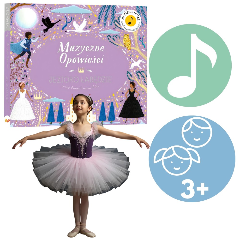 Poznaj jedną z najpiękniejszych historii baletowych wszech czasów w nowym wydaniu serii Muzyczne Opowieści. „Jezioro łabędzie” to książka dźwiękowa inspirowana baletem Piotra Czajkowskiego – łącząca klasykę, sztukę i magię dźwięku. Każda scena ożywa dzięki muzyce orkiestry i zachwycającym ilustracjom, które przenoszą dzieci w świat emocji, piękna i niezwykłej miłości Odetty i Zygfryda.