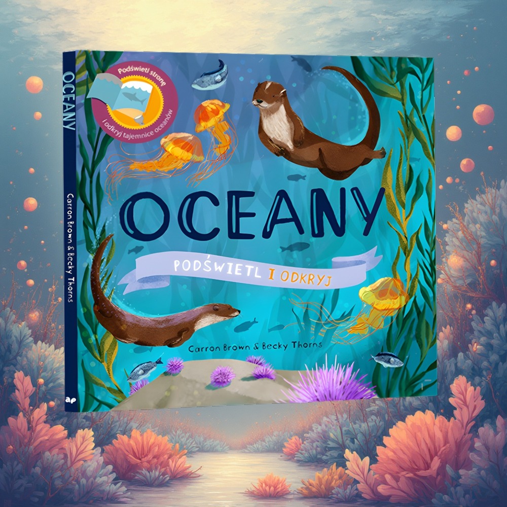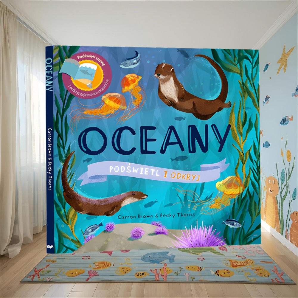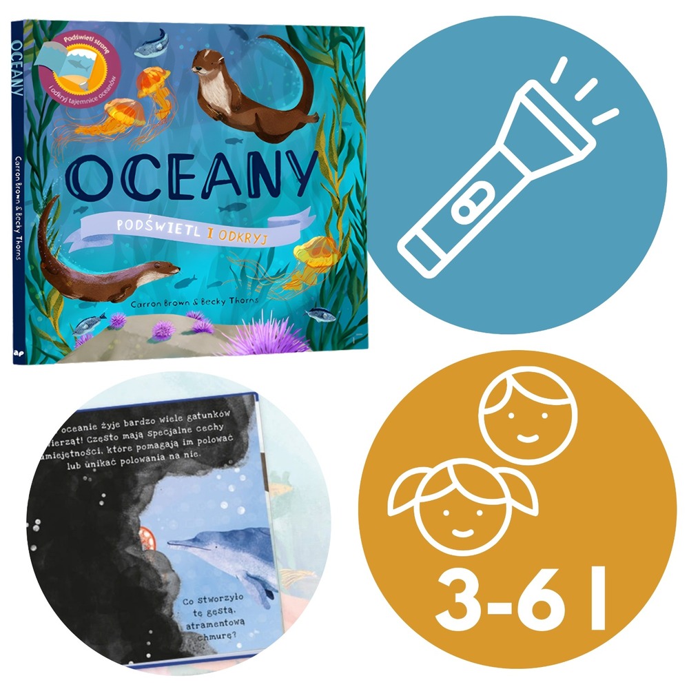 Wyrusz w niezwykłą podróż po głębinach mórz i oceanów! „Podświetl i odkryj. Oceany” to wyjątkowa książka, która pozwala dzieciom odkrywać tajemnice podwodnego świata w zupełnie nowy sposób – wystarczy podświetlić strony latarką, by zobaczyć, co kryje się pod powierzchnią wody!