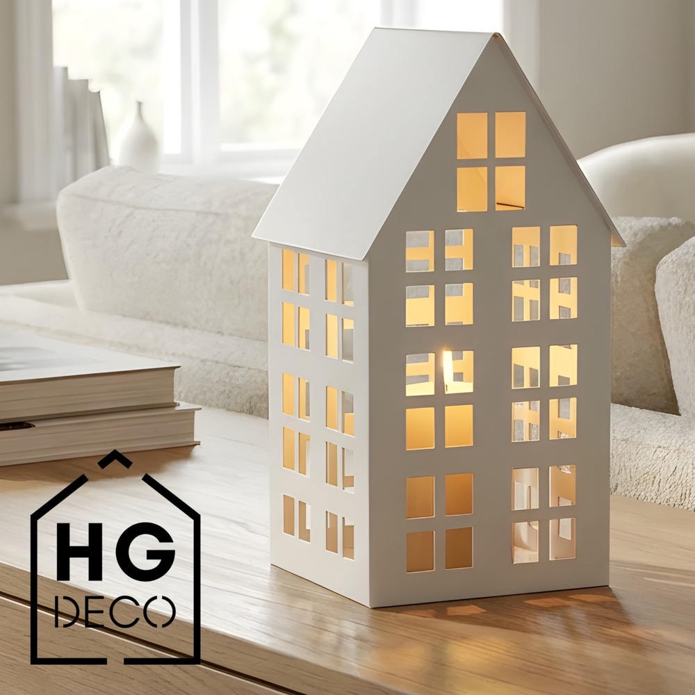 Lampion domek HGDECO to wyjątkowa dekoracja, która łączy estetykę nowoczesnego designu z ponadczasową prostotą. Wykonany z metalu i malowany proszkowo, zachwyca trwałością, elegancją i uniwersalnym charakterem. Pasuje do każdego stylu – od scandi, modern classic i japandi, po loft, industrial i minimalistyczny. Wnosi przytulność tam, gdzie go ustawisz – w salonie, sypialni, łazience, domowym spa, ogrodzie czy na tarasie.