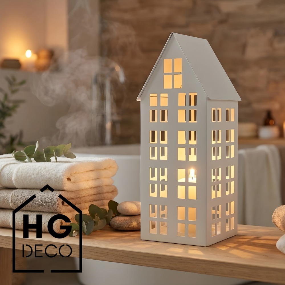 Lampion domek HGDECO to wyjątkowa dekoracja, która łączy estetykę nowoczesnego designu z ponadczasową prostotą. Wykonany z metalu i malowany proszkowo, zachwyca trwałością, elegancją i uniwersalnym charakterem. Pasuje do każdego stylu – od scandi, modern classic i japandi, po loft, industrial i minimalistyczny. Wnosi przytulność tam, gdzie go ustawisz – w salonie, sypialni, łazience, domowym spa, ogrodzie czy na tarasie.