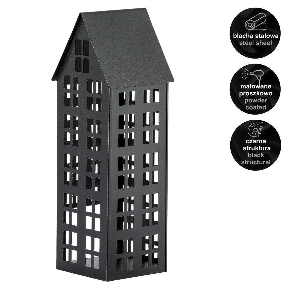 Lampion metalowy domek czarny 33 cm dekoracja wnętrz i ogrodu HGDECO