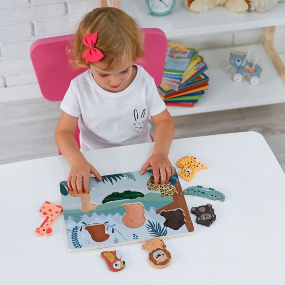Układanka dotykowa sensoryczna 3D Zwierzęta z safari Adam Toys została zaprojektowana jako wsparcie w rozwoju wczesnodziecięcym poprzez aktywne uczenie się. Dopasowywanie elementów do odpowiednich miejsc wspiera procesy poznawcze, takie jak analiza kształtów, logiczne myślenie oraz koordynacja wzrokowo-ruchowa.